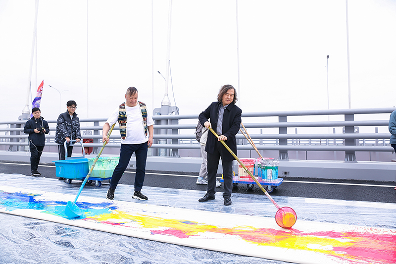 为深入学习贯彻习近平总书记关于黄河流域生态保护和高质量发展系列重要讲话精神,助力黄河重大国家战略实施,在新时代现代化强省会建设和服务全市改革发展大局中彰显文化担当,山东省美术家协会、中共济南市委宣传部、济南市文学艺术界联合会、济南新旧动能转换起步区管委会社会事业部,于11月6日在济南凤凰黄河大桥,联合组织举办庆祝中国共产党成立100周年跨黄巨幅美术作品创作活动,活动旨在进一步保护、传承和弘扬黄河文化,深入挖掘黄河文化的时代价值,以优秀的艺术作品记录新时代、讴歌新时代,为“文化济南”建设贡献文艺力量。